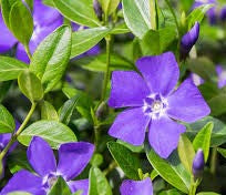 Vinca minor is the much loved periwinkle. This prostrate, evergreen plant forms a neat carpet of lance-shaped, dark green leaves - excellent for suppressing weeds in sun or partial shade. High quality, great looking plants from our Dutch supplier just breaking into flower, (28/3).